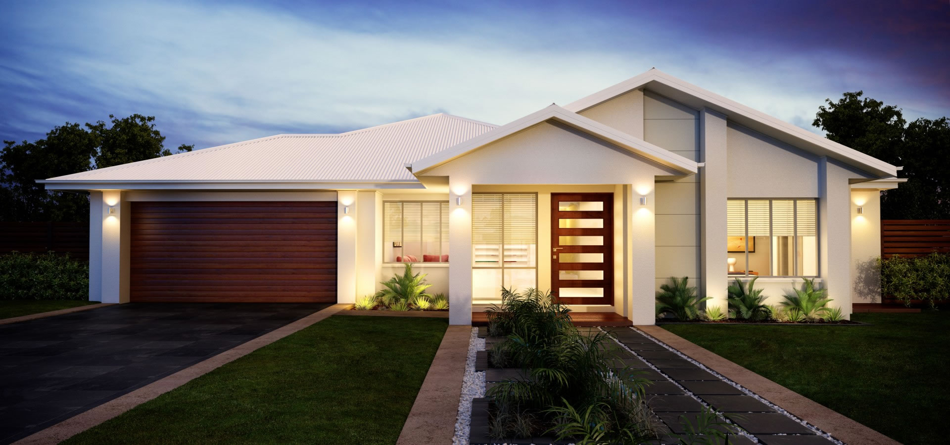 The Executive group of façades imparts an aura of strength and stability to your home. Executive façades deliver an elegant, balanced appearance, with their feature wall thickenings and simple windows. This is a well-conceived and proportioned style of façade well befitting an executive residence.